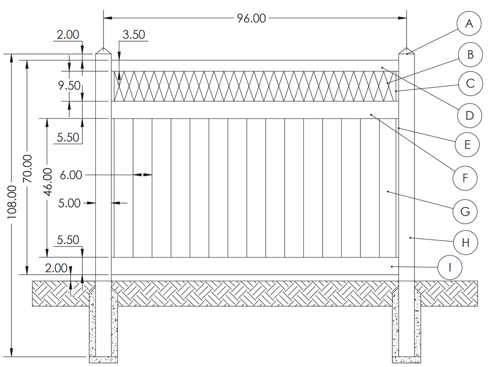 | B | 1 | LPRECUT | 12" × 96" Lattice Pannel |
