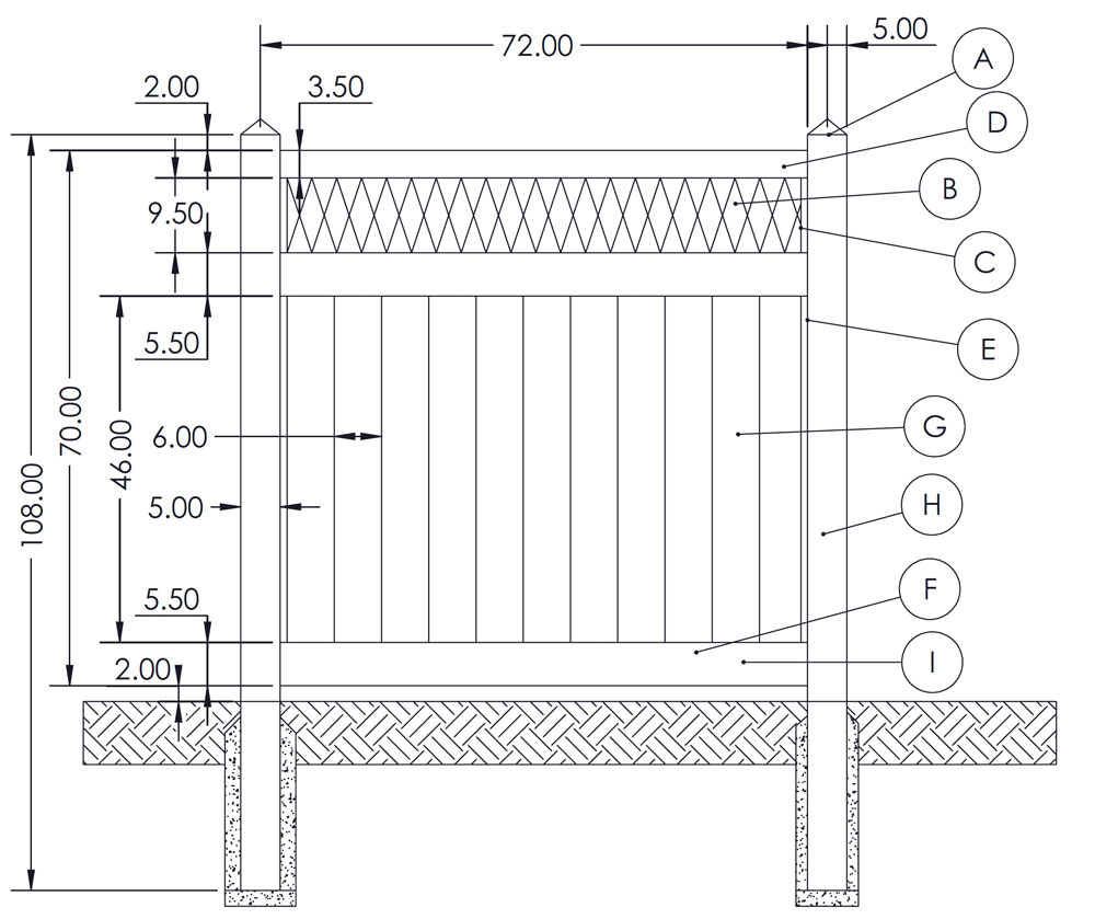 | B | 1 | LPRECUT | 12" × 67" Lattice Pannel |