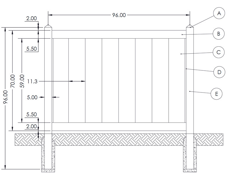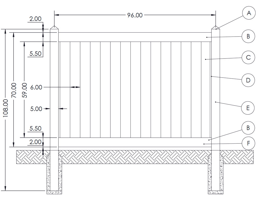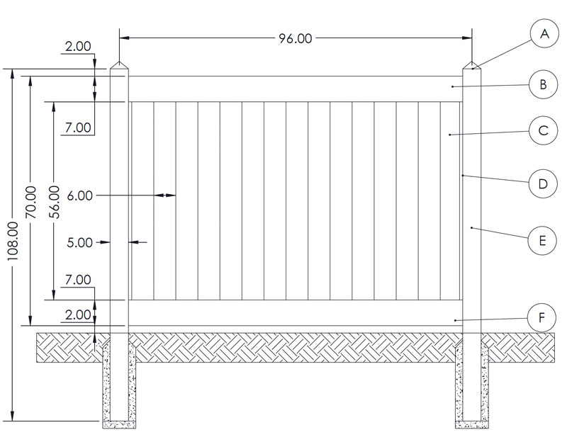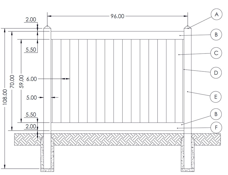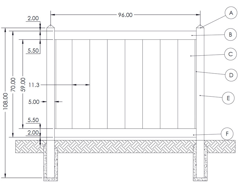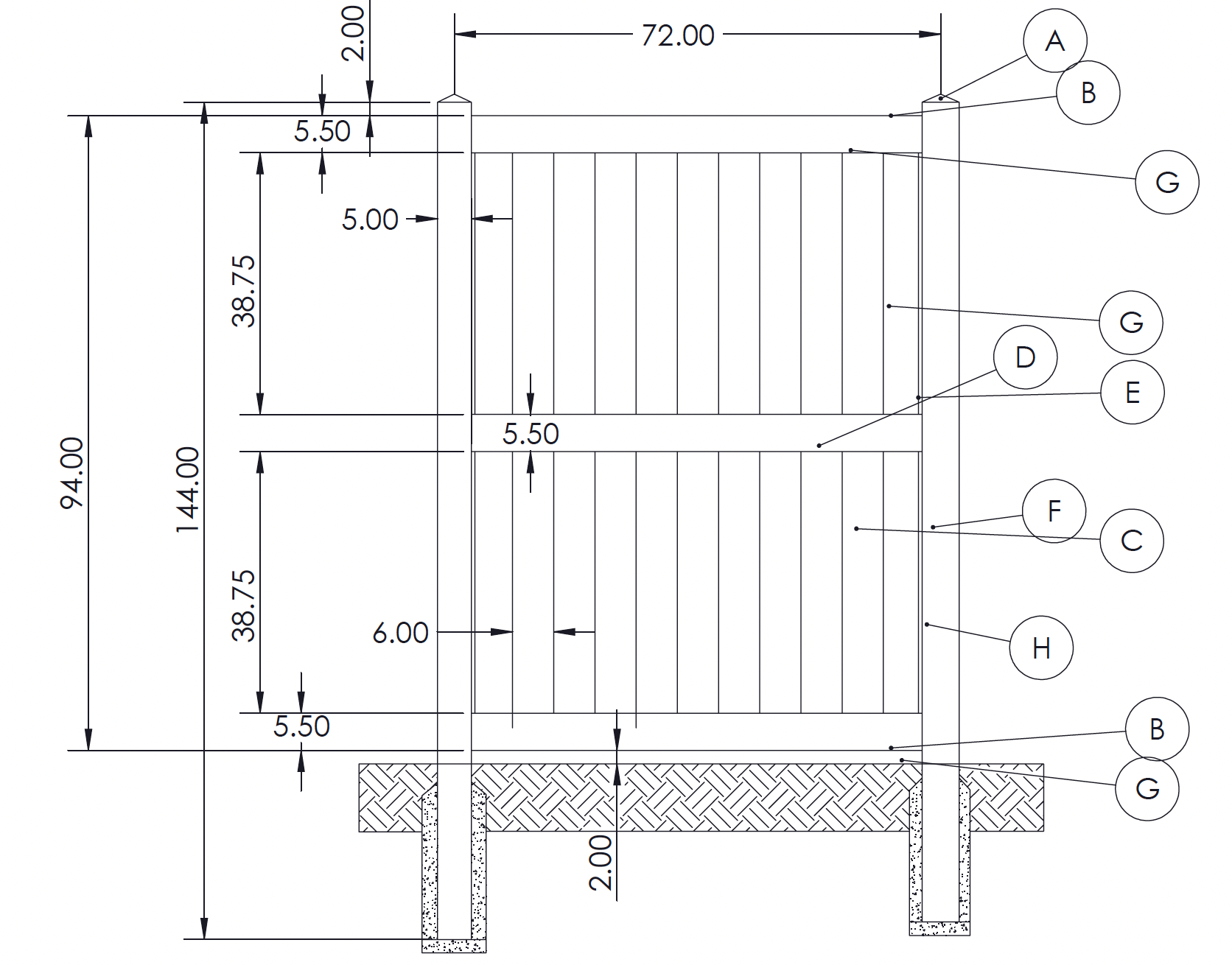 | D | 13 | F65S | ⅞" × 1 ½" × 67 ½" Pickets |